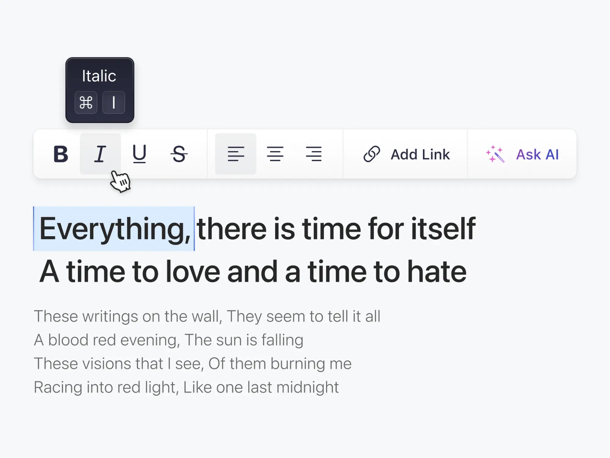A Button Group can be used for making a quick and easy way to adjust the text alignment as the users need.
