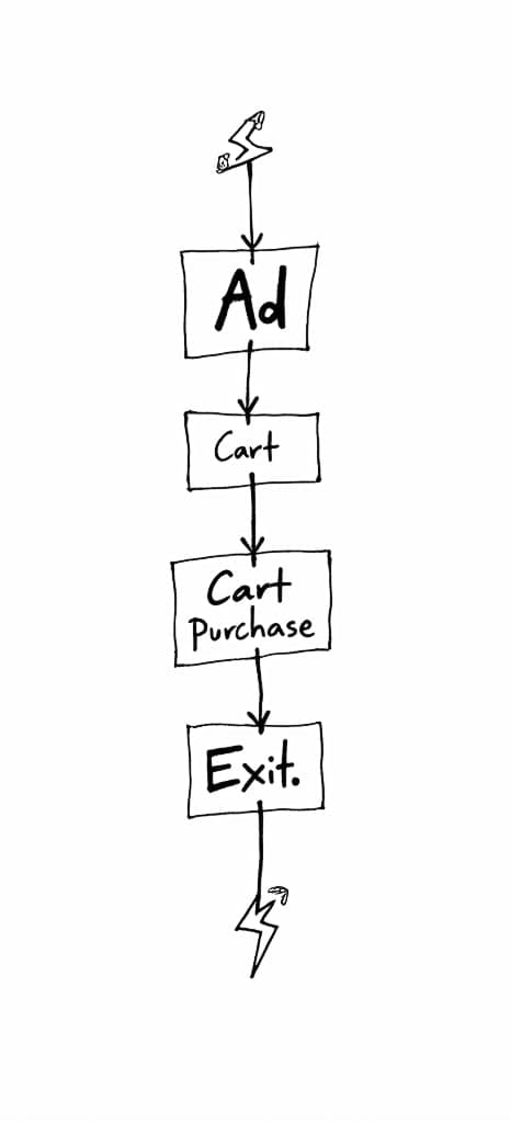 - Google Search → Blog post → Cart → Abandon (5 days later).