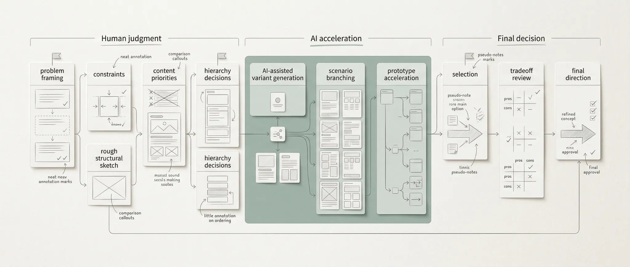 If AI takes over structure, prioritization, hierarchy, flow logic, and evaluation before the designer has formed a point of view, the result is different. In that case, the designer stops using AI as leverage and starts using it as a substitute for judgment.