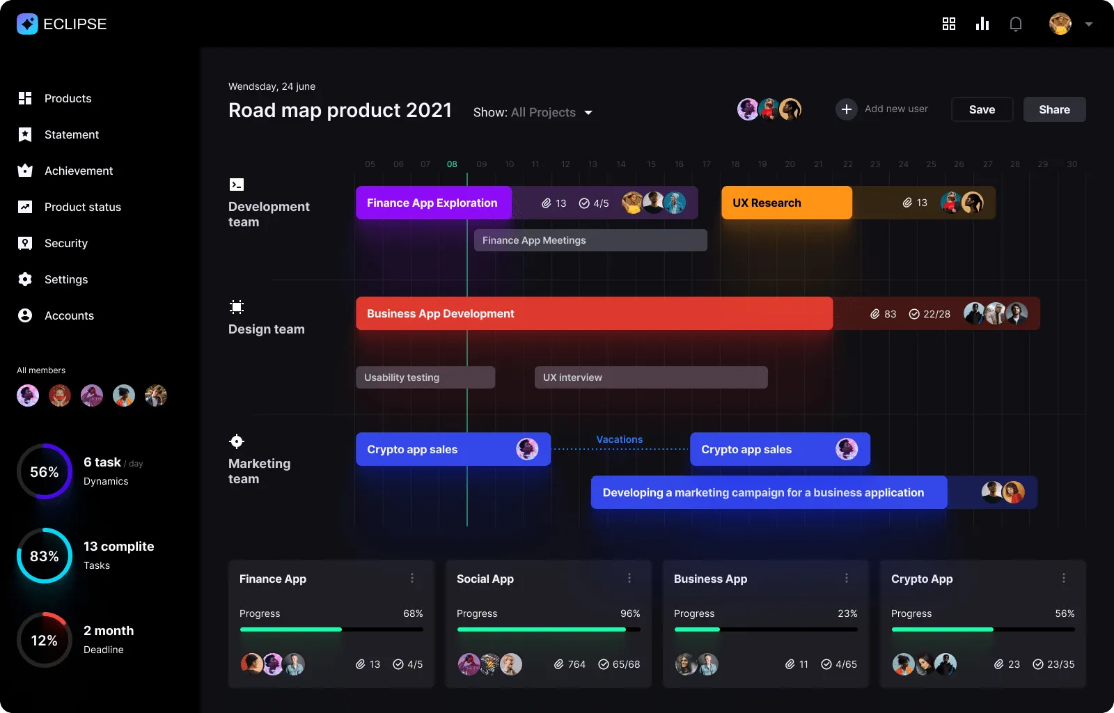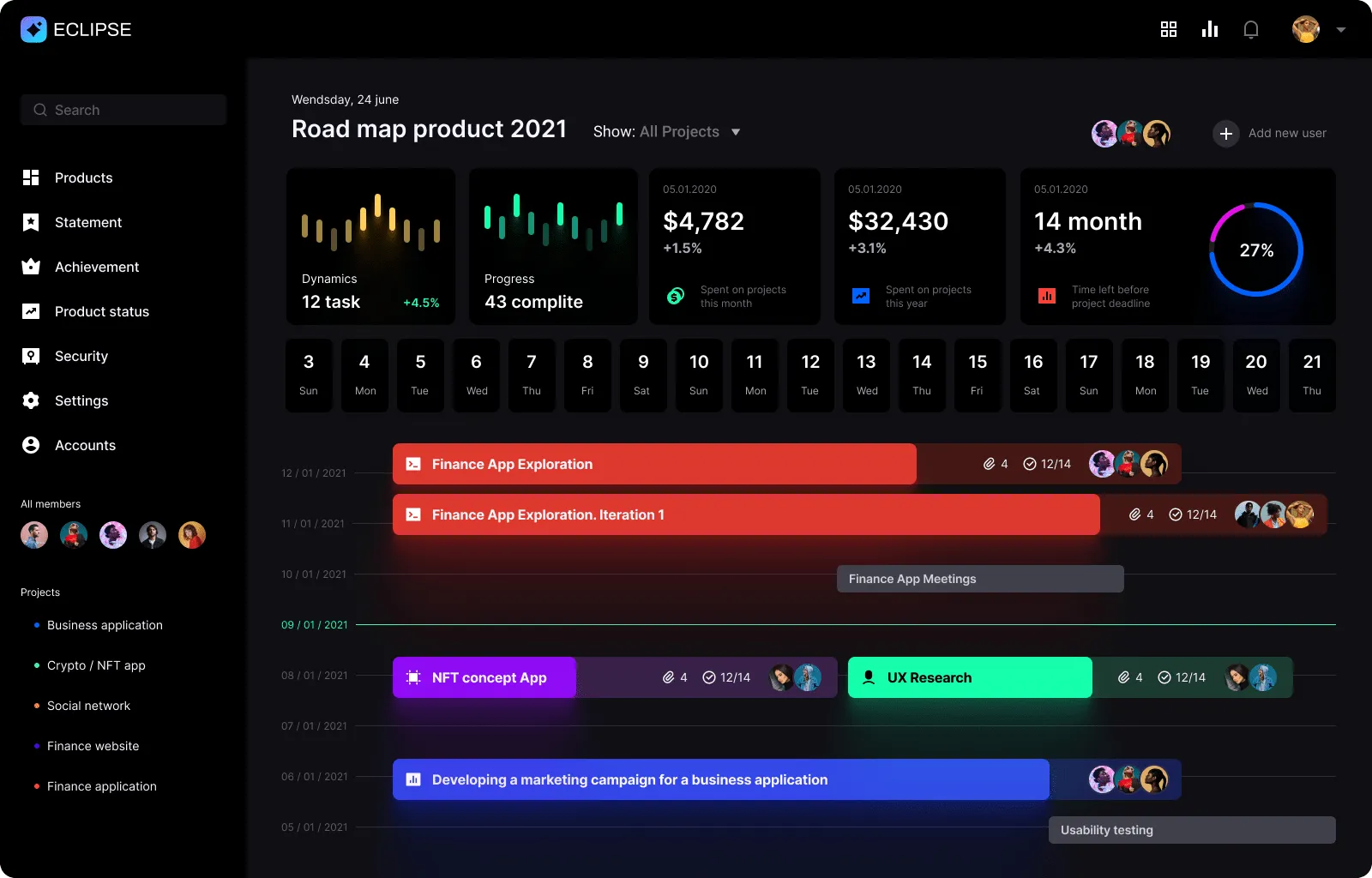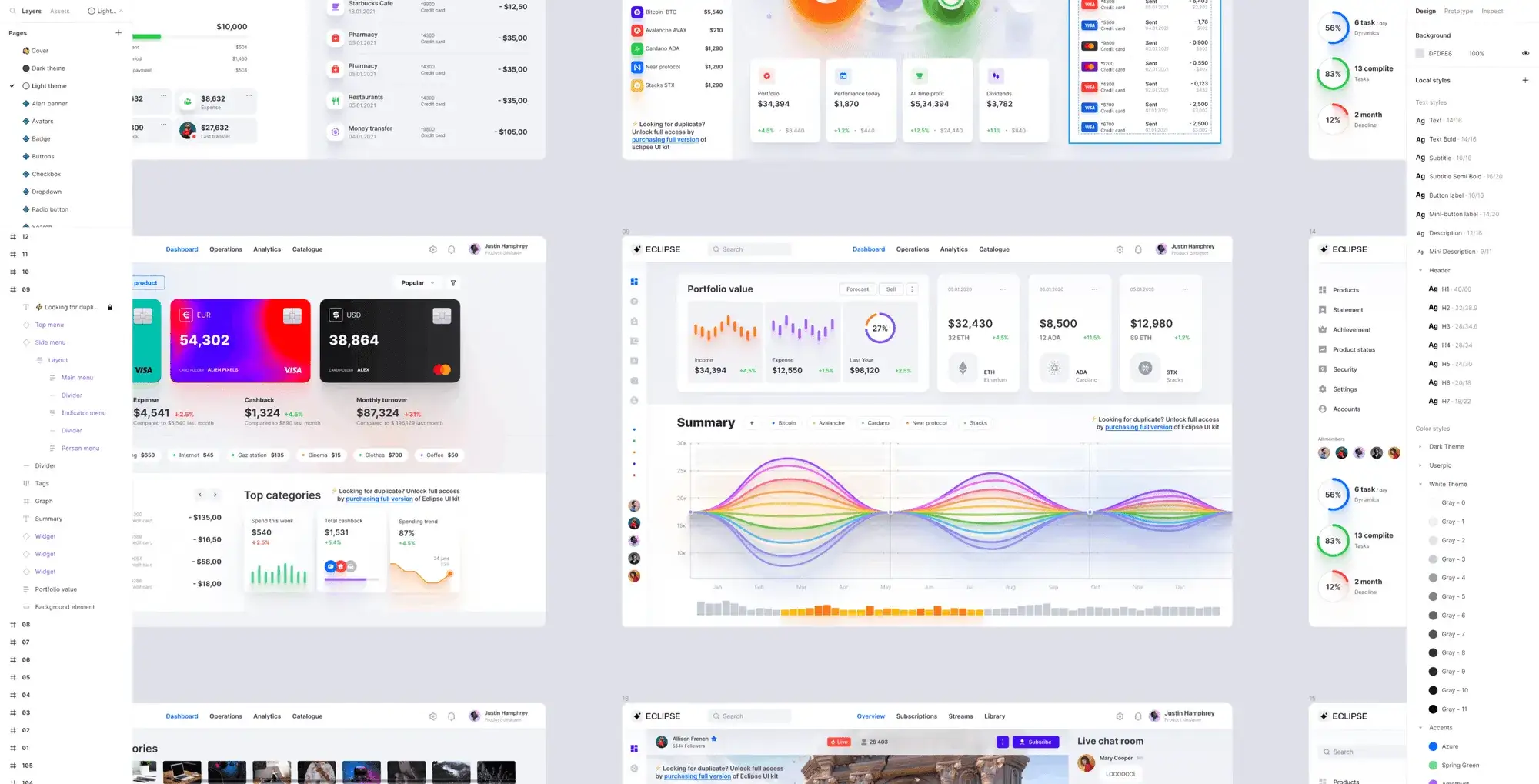 Meet Eclipse UI kit for Figma: 1100+ components, 74+ dashboard template for data-driven web apps.