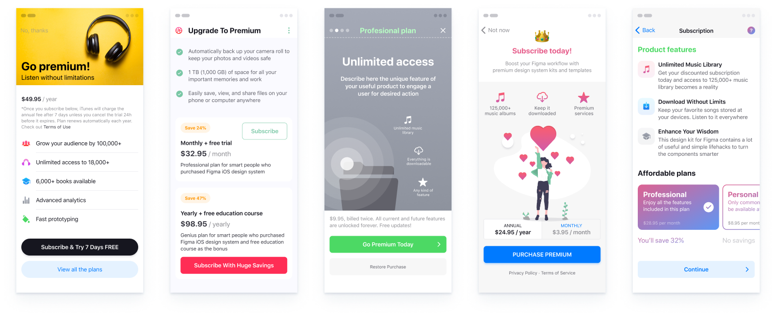 Figma iOS design system based on trusted and popular mobile patterns, collected from famous and successful apps. Loaded with 240+ templates.