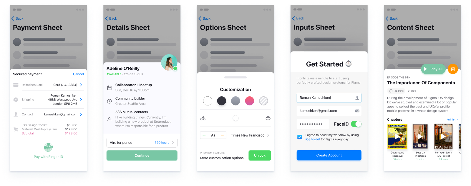 Figma library of iOS patterns served as ready-made templates. This UI kit inspired by World's best apps. Based on Human Interface guidelines.