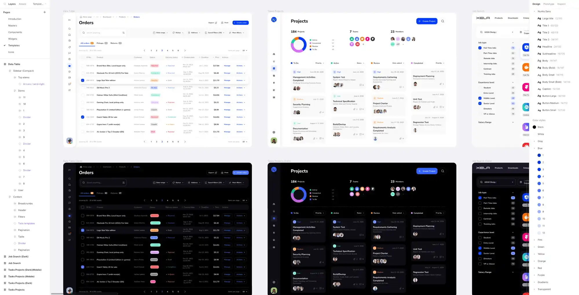 Customizable & adjustable dashboard design system with 50+ ready-to-use app layouts, 1900+ variants for 30 components with auto-layout.